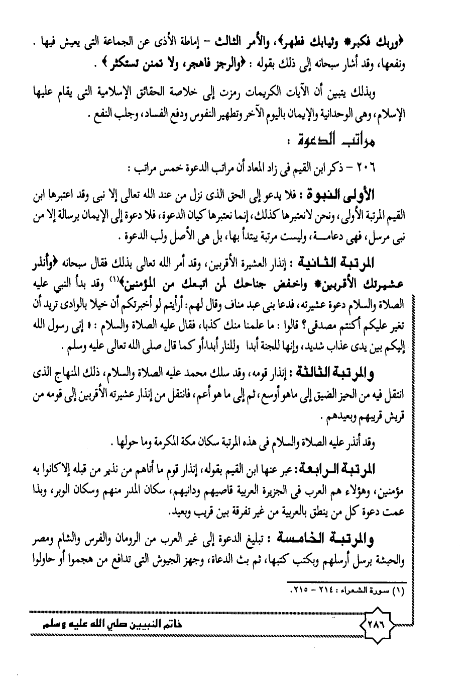 206- ذكر ابن القيم فى زاد المعاد أن مراتب الدعوة خمس مراتب: