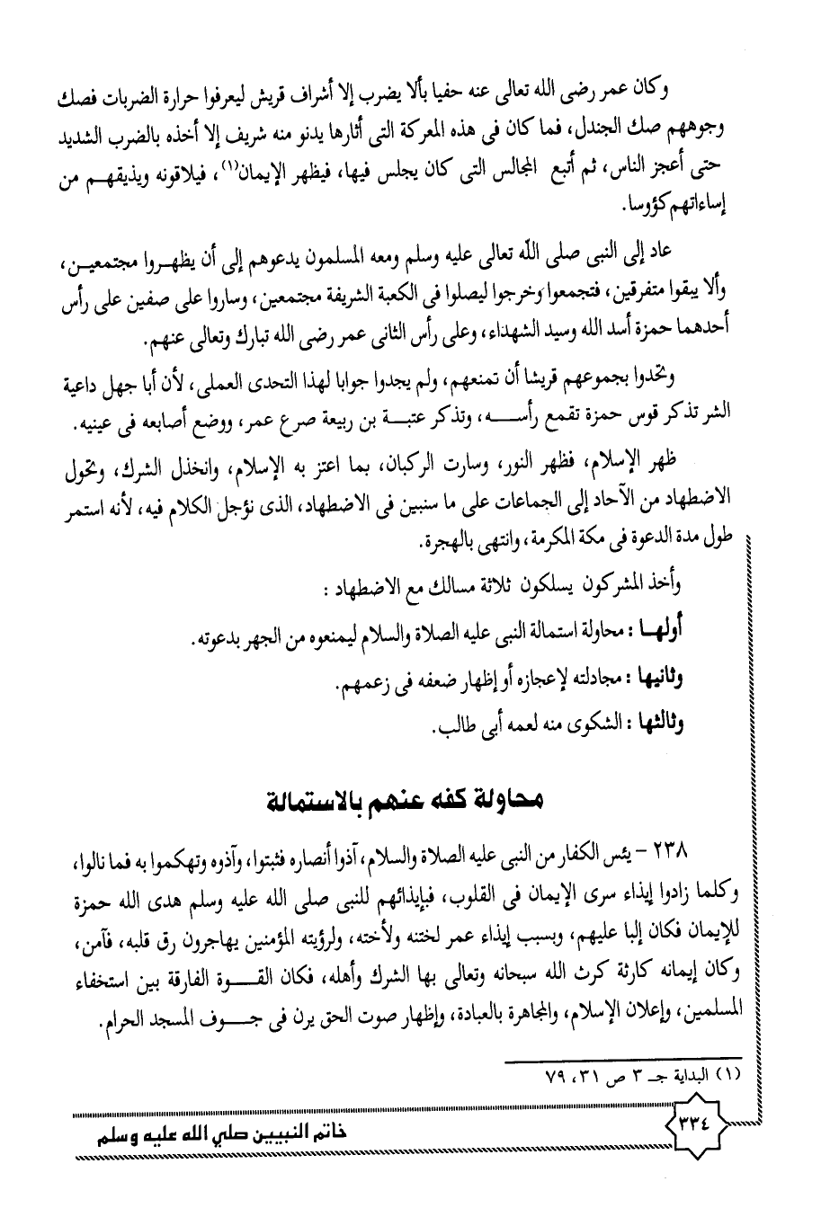 ظهر الإسلام، فظهر النور، وسارت الركبان، بما اعتز به الإسلام، وانخذل الشرك، وتحول الاضطهاد من الاحاد إلى الجماعات على ما سنبين فى الاضطهاد، الذى نؤجل الكلام فيه، لأنه استمر طول مدة الدعوة فى مكة المكرمة، وانتهى بالهجرة.