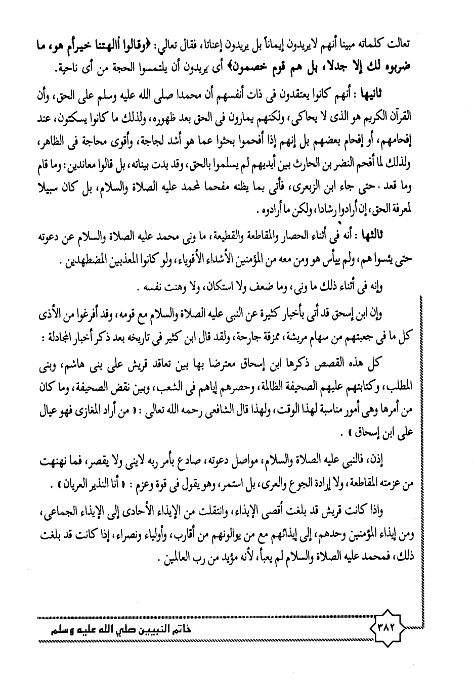 وإن ابن إسحاق قد أتى بأخبار كثيرة عن النبى عليه الصلاة والسلام مع قومه، وقد أفرغوا من الأذى كل ما فى جعبتهم من سهام مريشة، ممزقة جارحة، ولقد قال ابن كثير فى تاريخه بعد ذكر أخبار المجادلة: