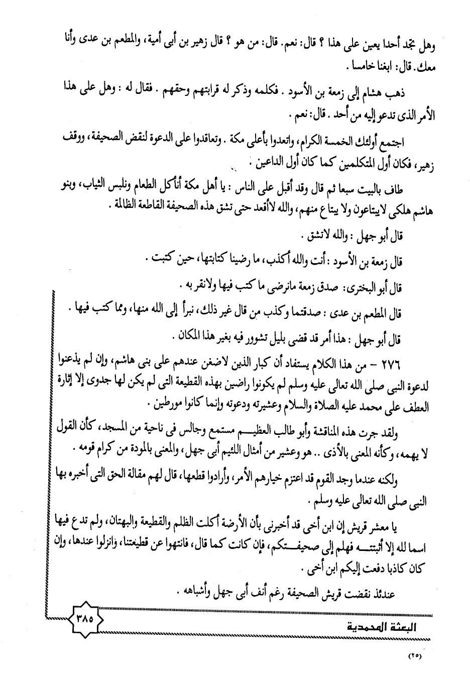 276- من هذا الكلام يستفاد أن كبار الذين لا ضغن عندهم على بنى هاشم، وإن لم يذعنوا لدعوة النبى صلى الله تعالى عليه وسلم لم يكونوا راضين بهذه القطيعة التى لم يكن لها جدوى إلا إثارة العطف على محمد عليه الصلاة والسلام وعشيرته ودعوته وإنما كانوا مورطين.
