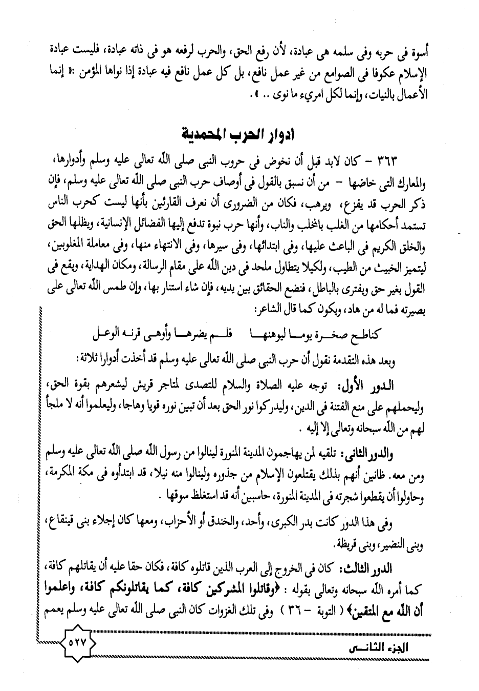 وبعد هذه التقدمة نقول أن حرب النبى صلى الله تعالى عليه وسلم قد أخذت أدوارا ثلاثة:
