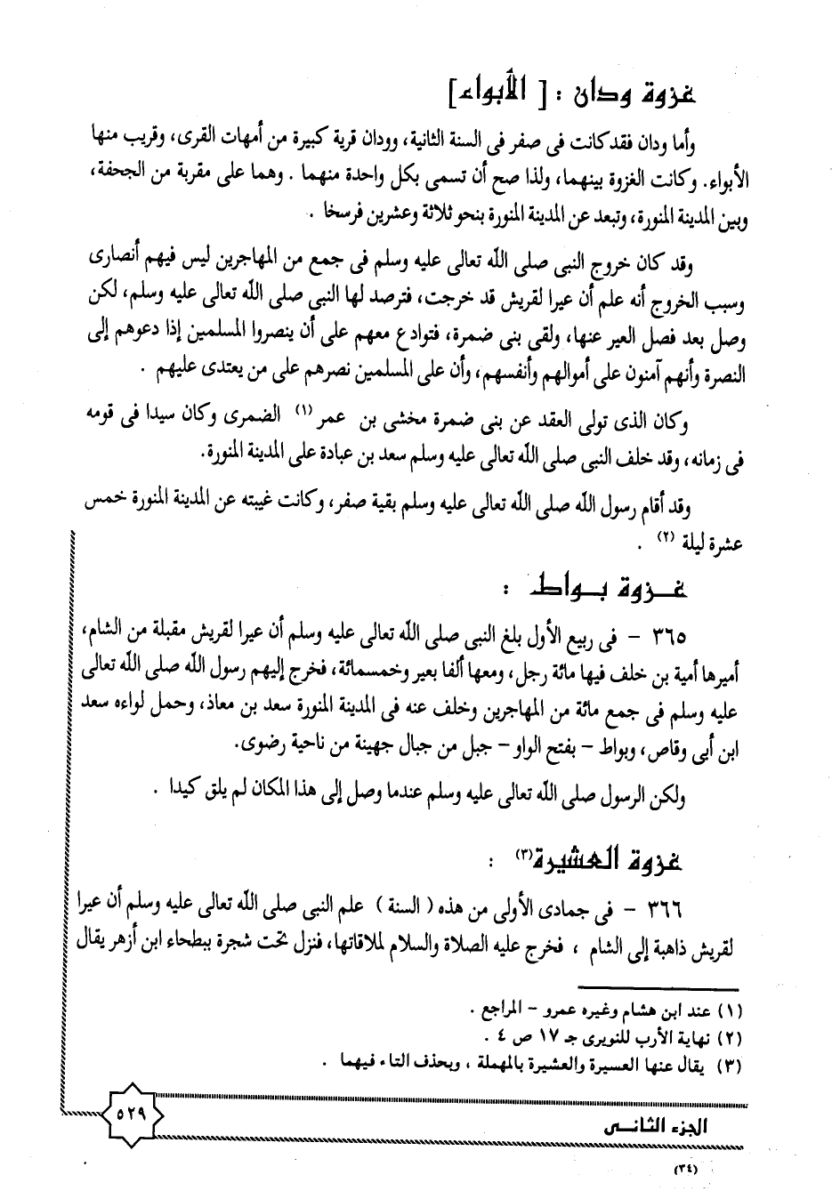 366- فى جمادى الأولى من هذه (السنة) علم النبى صلى الله تعالى عليه وسلم أن عيرا لقريش ذاهبة إلى الشام، فخرج عليه الصلاة والسلام لملاقاتها، فنزل تحت شجرة ببطحاء ابن أزهر يقال
