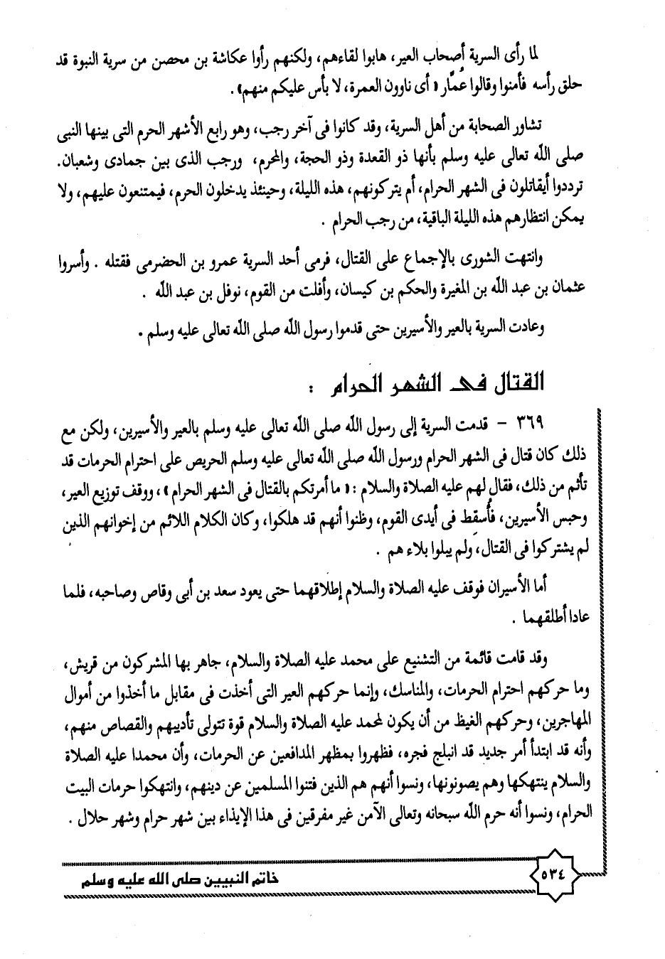 تشاور الصحابة من أهل السرية، وقد كانوا في آخر رجب، وهو رابع الأشهر الحرم التى بينها النبى صلى الله تعالى عليه وسلم بأنها ذو القعدة وذو الحجة، والمحرم، ورجب الذى بين جمادى وشعبان.