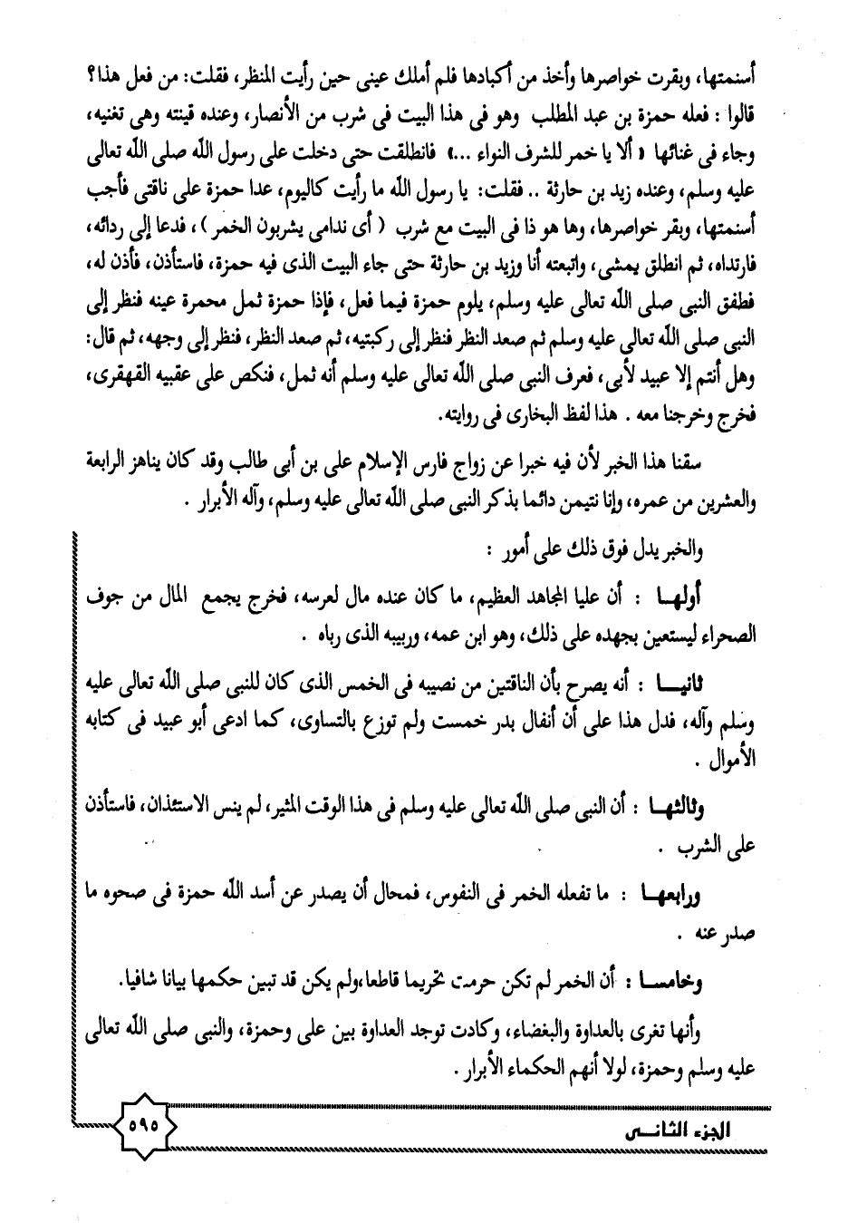 ورابعها: ما تفعله الخمر في النفوس، فمحال أن يصدر عن أسد الله حمزة في صحوه ما صدر عنه.