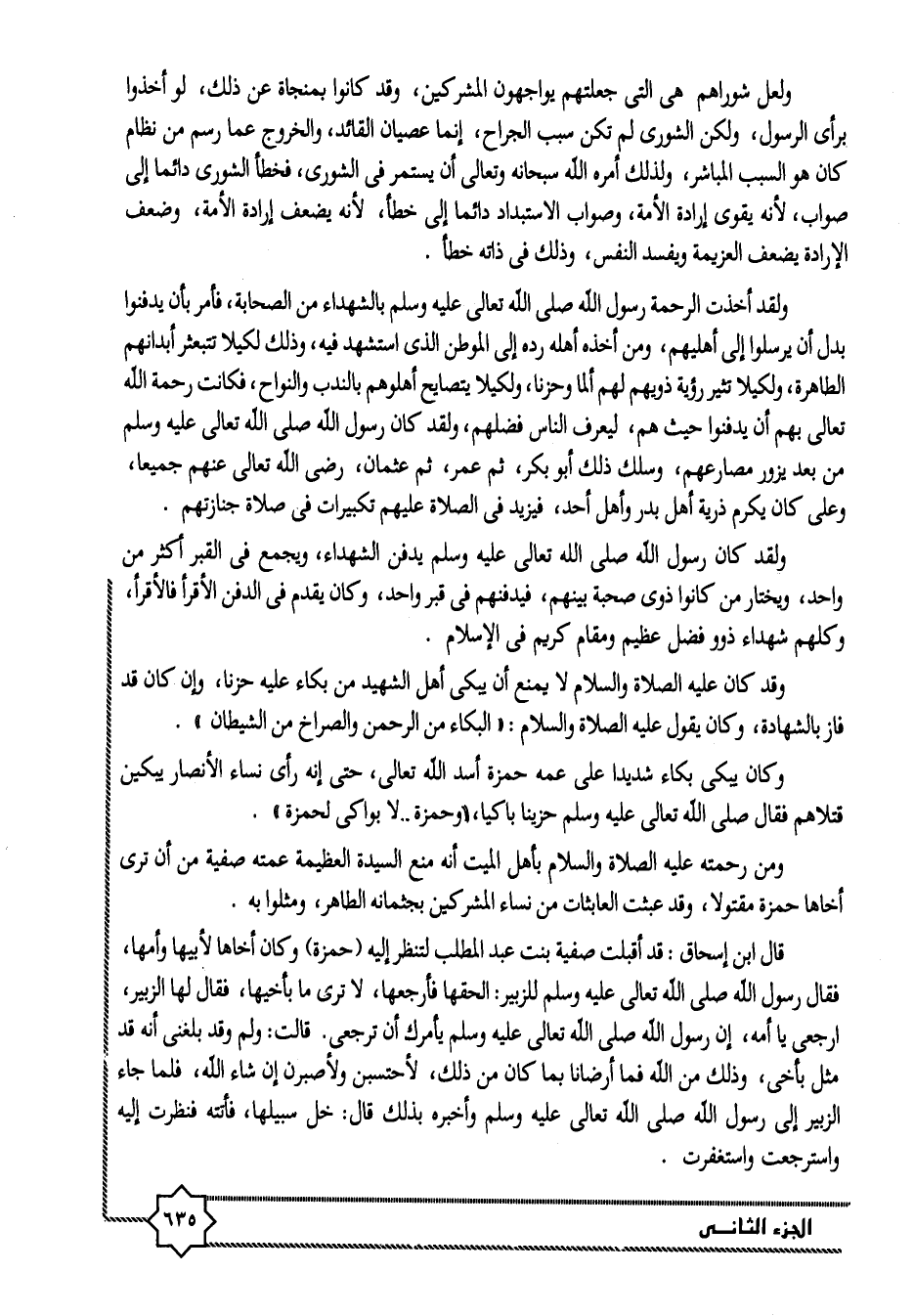 وقد كان عليه الصلاة والسلام لا يمنع أن يبكى أهل الشهيد من بكاء عليه حزنا، وإن كان قد فاز بالشهادة، وكان يقول عليه الصلاة والسلام: «البكاء من الرحمن والصراخ من الشيطان» .
