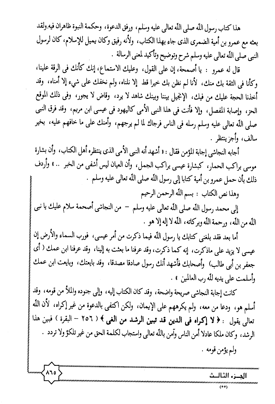 هذا كتاب رسول الله صلى الله تعالى عليه وسلم، ورفق الدعوة، وحكمة النبوة ظاهران فيه ولقد بعثه مع عمرو بن أمية الضمرى الذى جاء بهذا الكتاب، ولأنه رفيق وكان يميل للإسلام، كان لرسول النبى صلى الله تعالى عليه وسلم شرح وتوضيح وتأكيد لمعنى الرسالة.