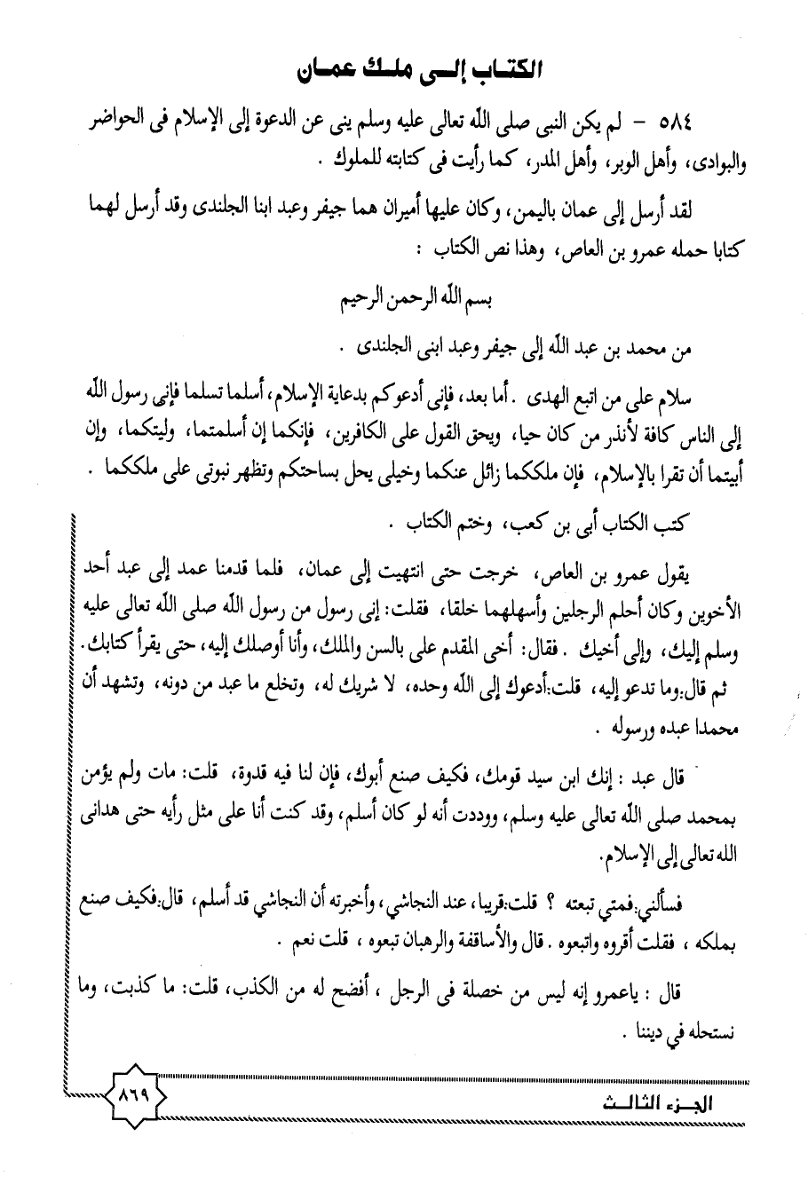 الكتاب إلى ملك عمان