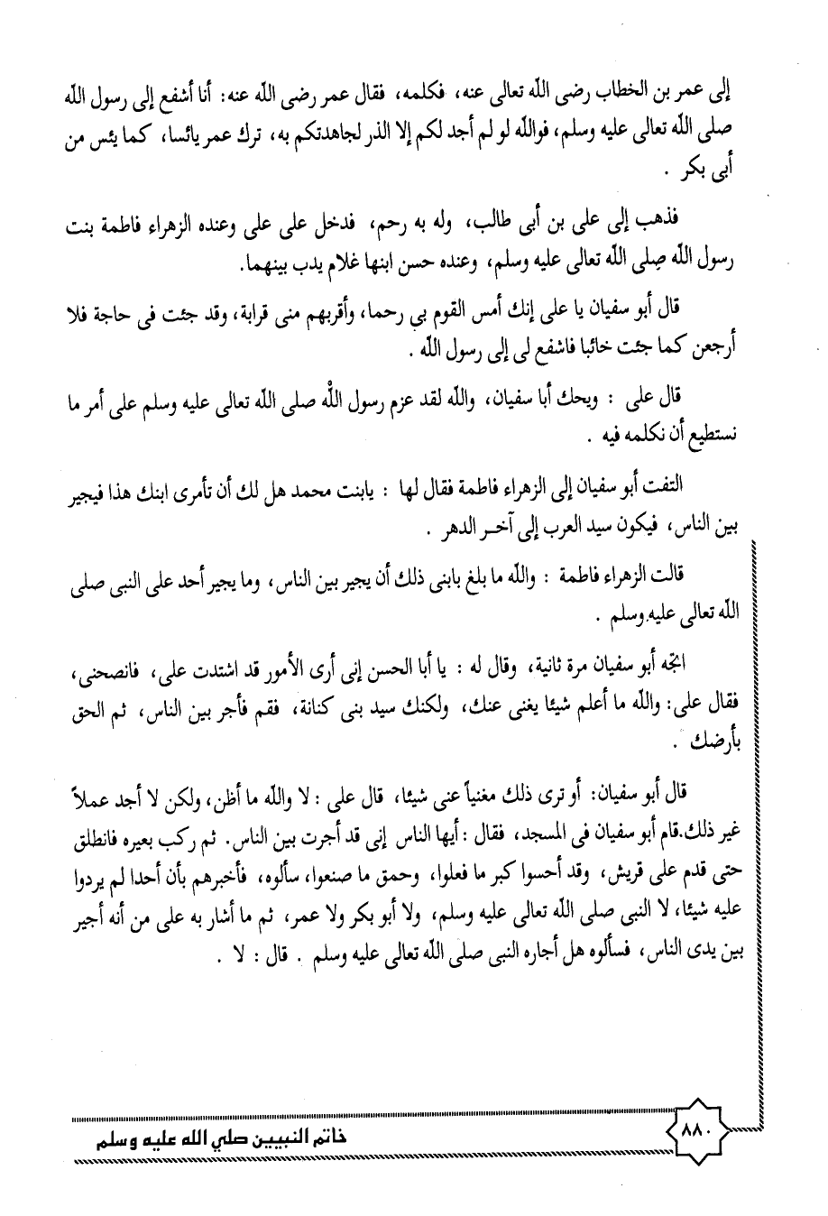 قال على: ويحك أبا سفيان، والله لقد عزم رسول الله صلى الله تعالى عليه وسلم على أمر ما نستطيع أن نكلمه فيه.