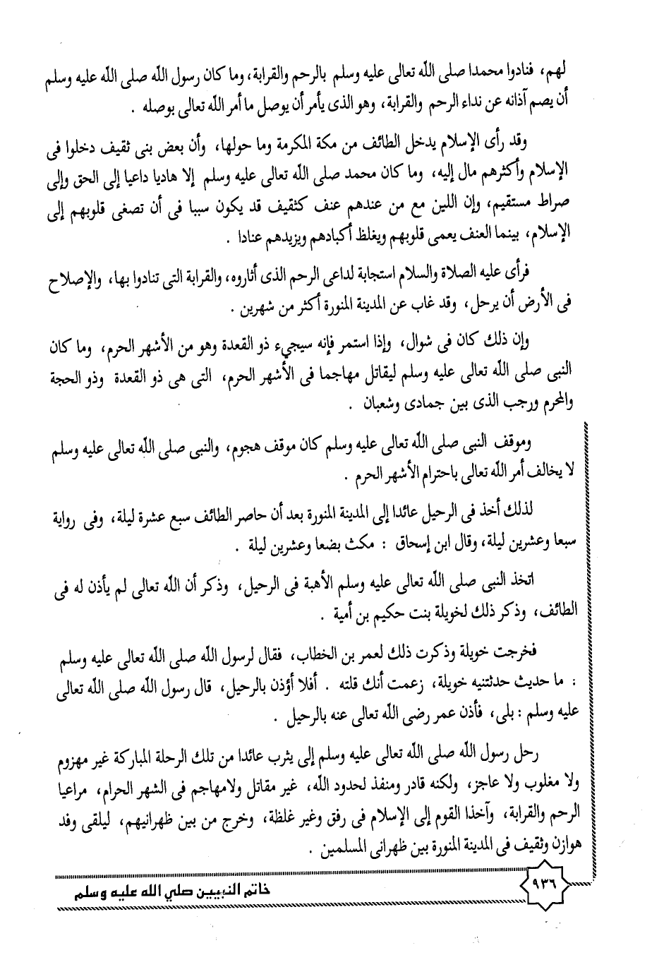 رحل رسول الله صلى الله تعالى عليه وسلم إلى يثرب عائدا من تلك الرحلة المباركة غير مهزوم ولا مغلوب ولا عاجز، ولكنه قادر ومنفذ لحدود الله، غير مقاتل ولا مهاجم فى الشهر الحرام، مراعيا الرحم والقرابة، وآخذا القوم إلى الإسلام فى رفق وغير غلظة، وخرج من بين ظهرانيهم، ليلقى وفد هوازن وثقيف فى المدينة المنورة بين ظهرانى المسلمين.