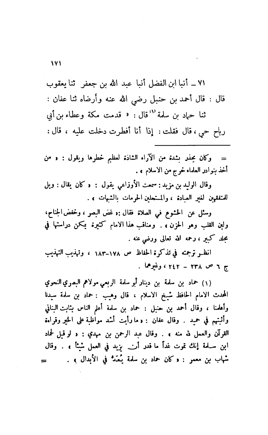 أَنْبَا ابْنُ الْفَضْلِ، أَنْبَا عَبْدُ اللَّهِ بْنُ جَعْفَرٍ، ثَنَا يَعْقُوبُ، قَالَ: قَالَ أَحْمَدُ بْنُ حَنْبَلٍ رَضِيَ اللَّهُ عَنْهُ وَأَرْضَاهُ ثَنَا عَفَّانُ، ثَنَا حَمَّادُ بْنُ سَلَمَةَ، قَالَ: " §قَدِمْتُ مَكَّةَ، وَعَطَاءُ بْنُ أَبِي رَبَاحٍ حَيُّ، قَالَ: فَقُلْتُ: إِذَا أَنَا أَفْطَرْتُ، دَخَلْتُ عَلَيْهِ، قَالَ: فَمَاتَ فِي رَمَضَانَ، وَكَانَ ابْنُ أَبِي لَيْلَى يَدْخُلُ عَلَيْهِ، فَقَالَ لِي عُمَارَةُ بْنُ مَيْمُونٍ: الْزَمْ قَيْسَ بْنَ سَعْدٍ، فَإِنَّهُ أَفْقَهُ مِنْ عَطَاءٍ "