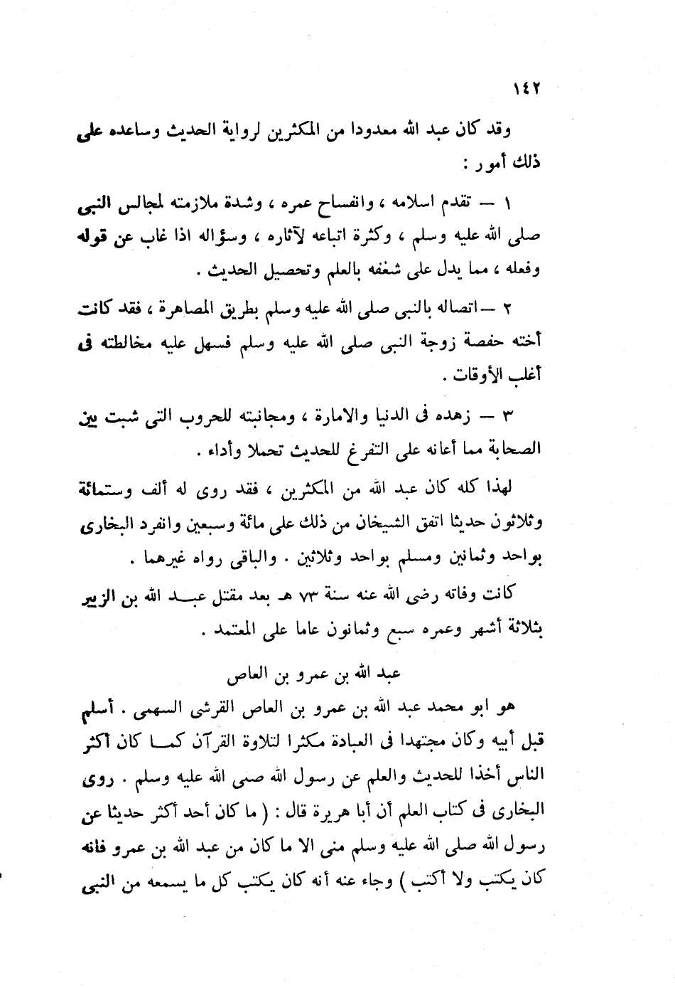 هو، أبو محمد عبد الله بن عمرو بن العاص القرشي، السهمي. أسلم قبل أبيه وكان مجتهدا في العبادة مكثرا لتلاوة القرآن، كما كان أكثر الناس أخذا للحديث والعلم عن رسول الله صلى الله عليه وسلم. روى البخاري في كتاب العلم أن أبا هريرة قال: "ما كان أحد أكثر حديثا عن رسول الله صلى الله عليه وسلم مني، إلا ما كان من عبد الله بن عمرو، فإنه كان يكتب ولا أكتب"، وجاء عنه أنه كان يكتب كل ما يسمعه من النبي