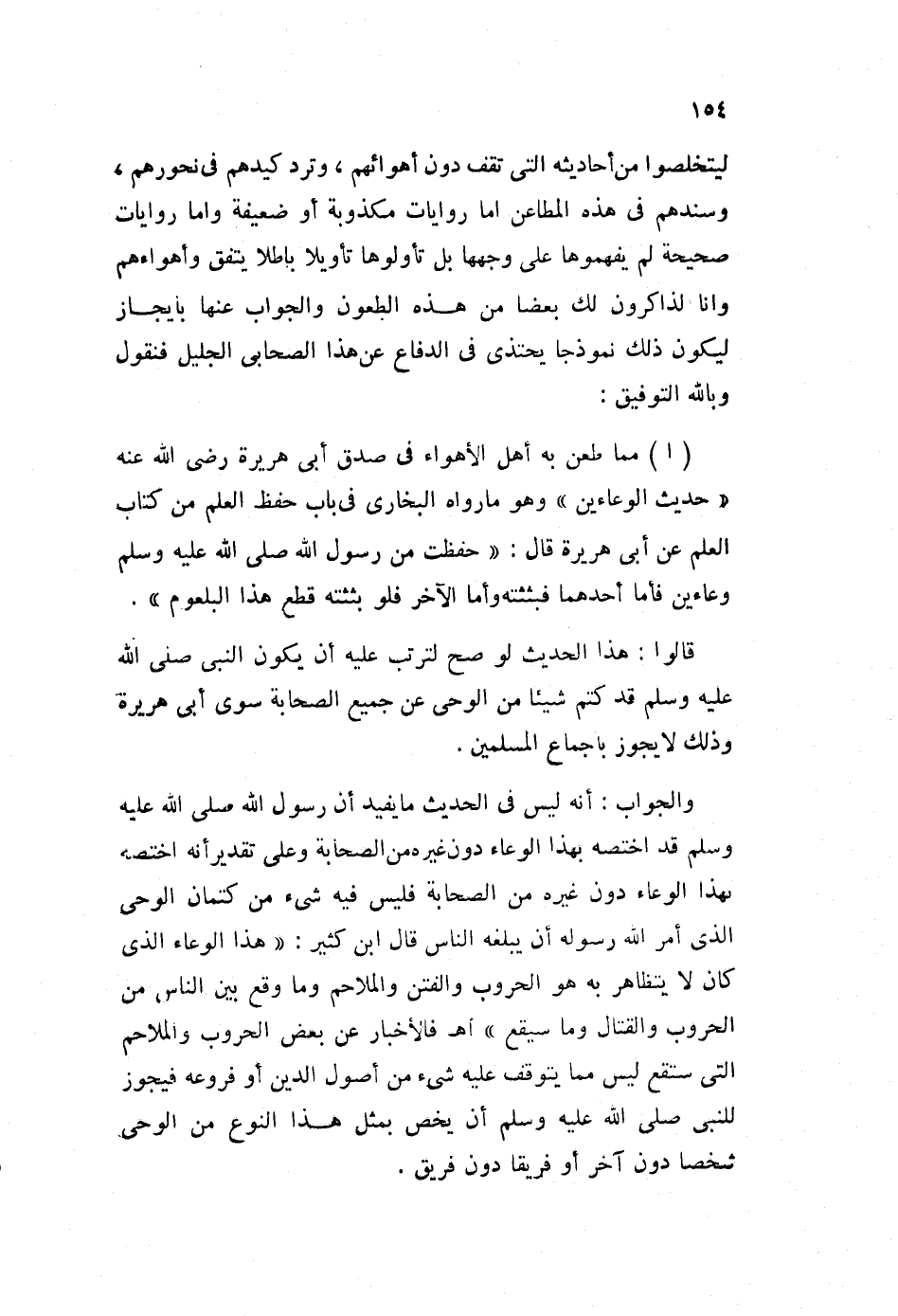 "أ" مما طعن به أهل الأهواء في صدق أبي هريرة رضي الله عنه: "حديث الوعاءين"، وهو ما رواه البخاري في باب حفظ العلم من كتاب العلم، عن أبي هريرة قال: "حفظت من رسول الله صلى الله عليه وسلم وعاءين، فأما أحدهما فبثثته، وأما الآخر فلو بثثته قطع هذا البلعوم".