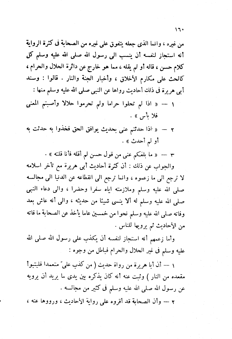والجواب عن ذلك: أن كثرة أحاديث أبي هريرة مع تأخر إسلامه لا ترجع إلى ما زعموه، وإنما ترجع إلى انقطاعه عن الدنيا إلى مجالسه صلى الله عليه وسلم، وملازمته إياه سفرا وحضرا، وإلى دعاء النبي صلى الله عليه وسلم له، ألا ينسى شيئا من حديثه، وغل أنه عاش بعد وفاته صلى الله عليه وسلم نحوا من خمسين عاما، يأخذ عن الصحابة ما فاته من الأحاديث، ثم يرويها للناس.