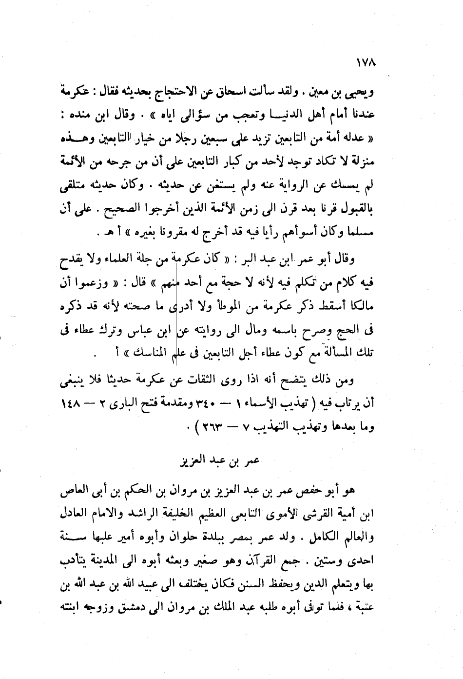 ومن ذلك يتضح أنه إذا روى الثقات عن عكرمة حديثا، فلا ينبغي أن يرتاب فيه "تهذيب الأسماء 1-340، ومقدمة فتح الباري 2-148، وما بعدها وتهذيب التهذيب 7-263".