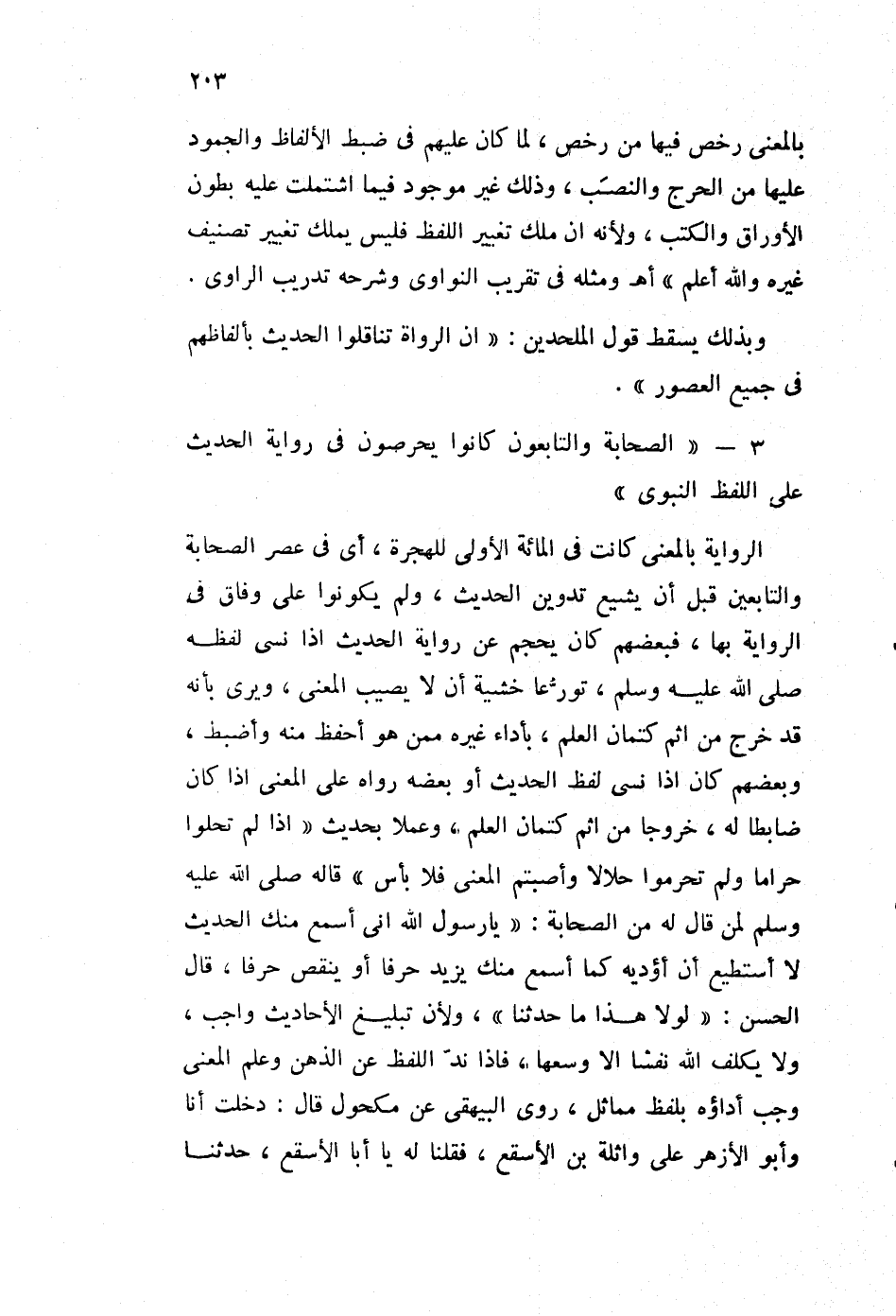 3- "الصحابة والتابعون كانوا يحرصون في رواية الحديث على اللفظ النبوي".