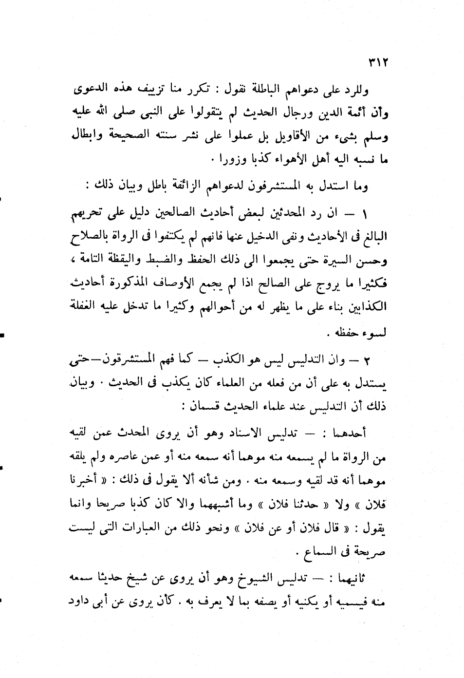 2- وأن التدليس ليس هو الكذب -كما فهم المستشرقون- حتى يستلد به على أن من فعله من العلماء كان يكذب في الحديث. وبيان ذلك أن التدليس عند علماء الحديث قسمان: