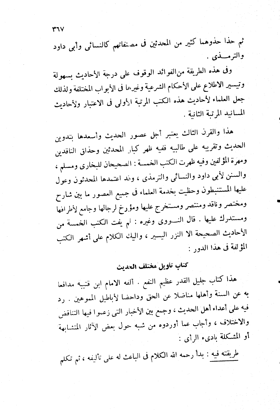 هذا والقرن الثالث، يعتبر أجل عصور الحديث، وأسعدها بتدوين الحديث، وتقريبه على طالبيه ففيه ظهر كبار المحدثين، وحذاق الناقدين ومهرة المؤلفين وفيه ظهرت الكتب الخمسة: الصحيحان للبخاري ومسلم، والسنن لأبي داود والنسائي، والترمذي، وقد اعتمدها المحدثون وعول عليها المستنبطون، وحظيت بخدمة العلماء في جميع العصور ما بين شارح ومختصر، وناقد ومنتصر، ومستخرج عليها ومؤرخ لرجالها، وجامع لأطرافها ومستدرك عليها. وقال النووي وغيره: لم يفت الكتب الخمسة من الأحاديث الصحيحة، إلا النزر اليسير، وإليك الكلام على أشهر الكتب المؤلفة في هذا الدور: