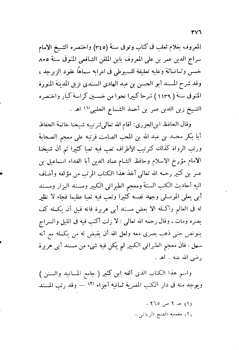 واسم هذا الكتاب الذي ألفه ابن كثير "جامع المسانيد والسنن"، ويوجد منه في دار الكتب المصرية ثمانية أجزاء2، وقد رتب المسند