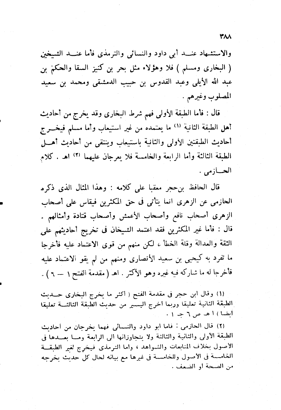 1 وقال ابن حجر في مقدمة الفتح "أكثر ما يخرج البخاري حديث الطبقة الثانية تعليقا، وربما أخج اليسير من حديث الطبقة الثالثة تعليقا أيضا". ا. هـ ص6 جـ1.