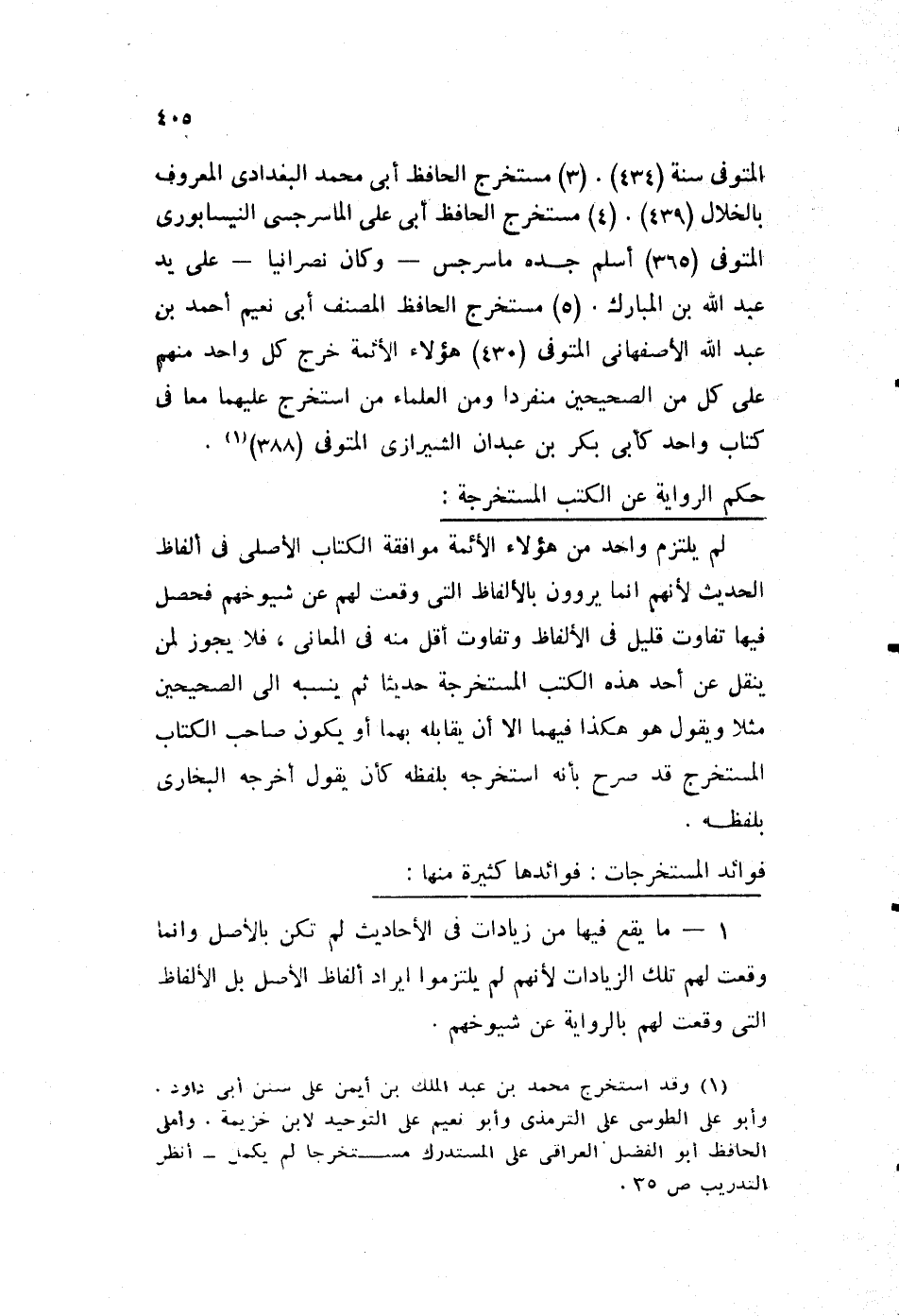 5- مستخرج الحافظ المصنف، أبي نعيم أحمد بن عبد الله الأصفهاني، المتوفى "430"، هؤلاء الأئمة خرج كل واحد منهم على كل من الصحيحين، منفردا ومن العلماء من استخرج عليهما معا في كتاب واحد، كأبي بكر بن عبدان الشيرازي، المتوفى "388"1.