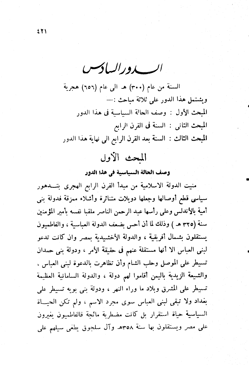 السنة من عام "300"هـ إلى عام "656" هجرية.