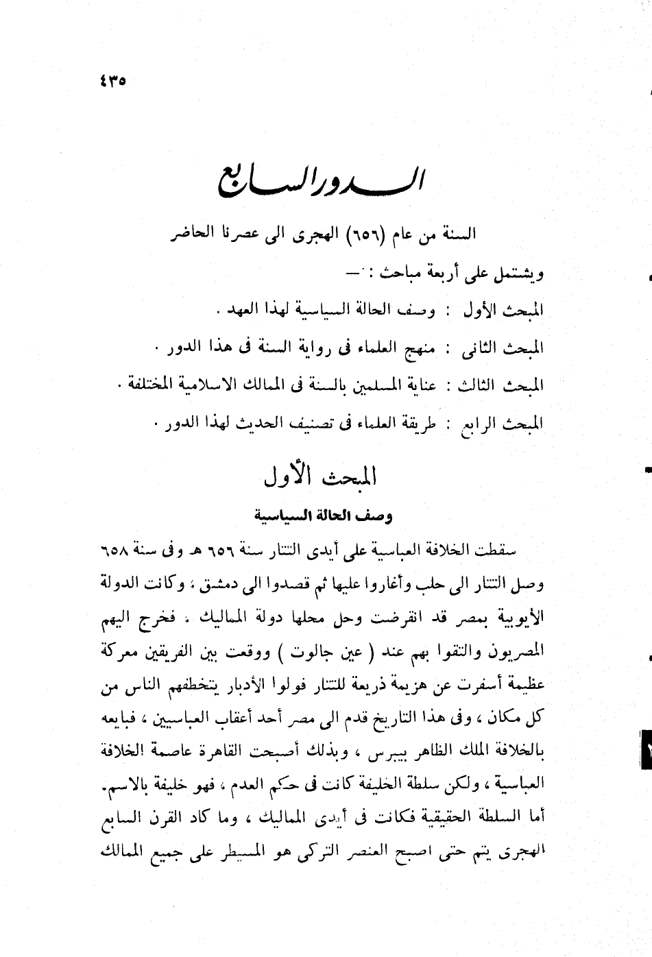 السنة من عام "656" الهجري إلى عصرنا الحاضر.
