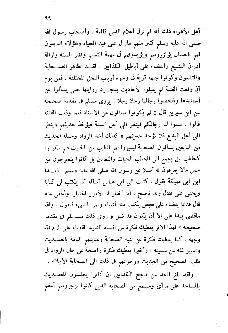 كان من وراء الشيعة، والخوارج ومن على شاكلتهم الجمهور الأعظم من المسلمين، الذين لم يتدنسوا بالتشيع، ولا بالخروج، وتمسكوا بالسنن الصحيحة ورفضوا الأحاديث، التي تروى من طريق أرباب هذه النحل، أيا كان لونهم السياسي، ونفوا عن السنة كل دخيل، وحفظوها من عبث أهل الأهواء ذلك أنه لم تزل أعلام الدين قائمة، وأصحاب رسول الله صلى الله عليه وسلم كثير منهم ما زال على قيد الحياة، وهؤلاء التابعون لهم بإحسان يؤازرونهم، ويؤيدونهم في مهمة التعليم، ونشر السنة وإزالة أدران التشيع والقضاء على أباطيل الكذابين. لقد تظاهر الصحابة، والتابعون وكونوا جبهة قوية في وجوه أرباب النحل المختلة. فمن يوم أن وقعت الفتنة لم يقبلوا الأحاديث بمجرد روايتها، حتى يسألوا عن أسانيدها، ويفحصوا رجالها رجلا رجلا. يروي مسلم في مقدمة صحيحه عن ابن سيرين قال: "لم يكونوا يسألون عن الإسناد، فلما وقعت الفتنة قالوا: سموا لنا رجالكم، فينظر إلى أهل السنة فيؤخذ حديثهم، وينظر إلى أهل البدع، فلا يؤخذ حديثهم"، كذلك أخذ الرواة وحملة الحديث من التابعين، يسألون الصحابة ليميزوا لهم الطيب من الخبيث، فلم يكونوا كحاطب ليل يجمع إلى الحطب الحيات، والثعابين بل كانوا يتحرجون من حمل ما لا يعرفون له أصلا، عن رسول الله صلى الله عليه وسلم. فهذا ابن أبي مليكة يقول: كتبت إلى ابن عباس، أسأله أن يكتب لي كتابا، ويخفي عني فقال: ولد ناصح، أنا أختار له الأمور اختيارا، وأخفي عنه قال: فدعا بقضاء علي، فجعل يكتب منه أشياء ويمر بالشيء فيقول. والله ما قضى بهذا علي، إلا أن يكون قد ضل "روى ذلك مسلم في مقدمة صحيحه" فهذا الأثر يعطيك فكرة عن إفساد الشيعة، لقضاء علي كرم الله وجهه.