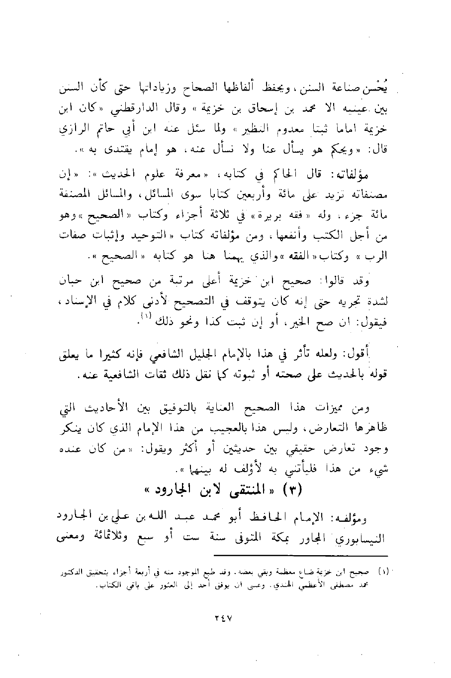 1 صحيح ابن خزيمة ضاع معظمه, وبقي بعضه، وقد طبع الموجود منه في أربعة أجزاء بتحقيق الدكتور محمد مصطفى الأعظمي الهندي، وعسى أن يوفق أحد إلى العثور على باقي الكتاب.