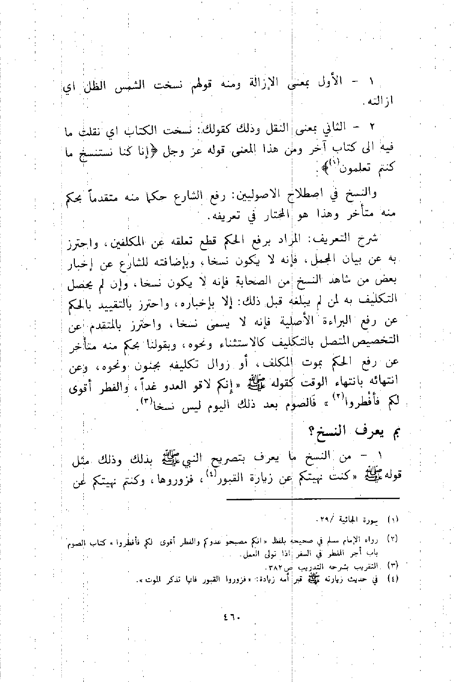 1- من النسخ ما يعرف بتصريح النبي -صلى الله عليه وسلم- بذلك وذلك مثل قوله -صلى الله عليه وسلم: "كنت نهيتكم عن زيارة القبور 1، فزوروها، وكنت نهيتكم عن