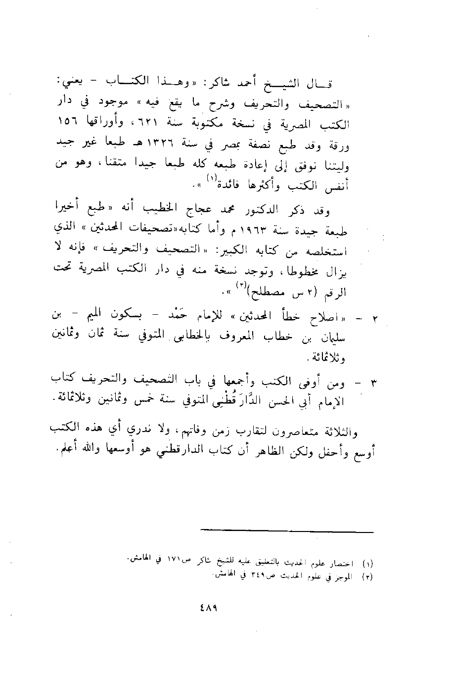 3- ومن أوفى الكتب وأجمعها في باب التصحيف والتحريف كتاب الإمام أبي الحسن الدارقطني المتوفى سنة خمس وثمانين وثلاثمائة.