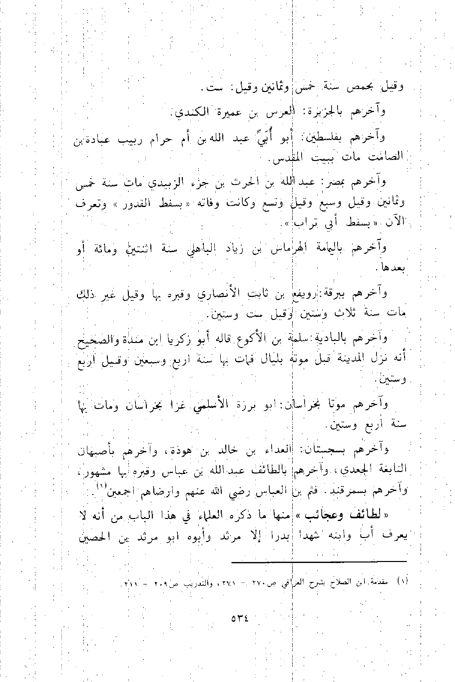 وآخرهم بسجستان: العداء بن خالد بن هوذة، وآخرهم بأصبهان النابغة الجعدي، وآخرهم بالطائف عبد الله بن عباس وقبره بها مشهور، وآخرهم بسمرقند قثم بن العباس رضي الله عنهم وأرضاهم أجمعين1.