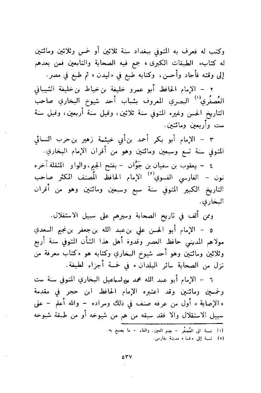 2- الإمام الحافظ أبو عمرو خليفة بن خياط بن خليفة الشيباني العصفري1 البصري المعروف بشباب أحد شيوخ البخاري صاحب التاريخ الحسن وغيره, المتوفى سنة ثلاثين، وقيل: سنة أربعين، وقيل: سنة ست وأربعين ومائتين.