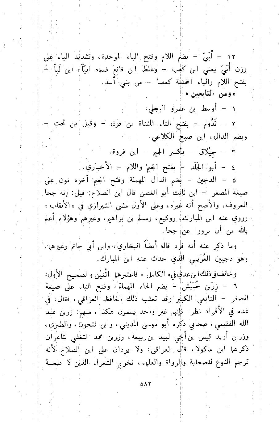 6- زِر بن حبيش -بضم الحاء المهملة، وفتح الباء على صيغة المصغر- التابعي الكبير وقد تعقب ذلك الحافظ العراقي، فقال: في غده في الأفراد نظر: فإنهم غير واحد يسمون هكذا، منهم: زر بن عبد الله الفقيمي، صحابي ذكره أبو موسى المديني، وابن فتحون، والطبري، وزر بن أربد قيس ابن أخي لبيد بن ربيعة، وزر بن محمد التغلبي شاعران ذكرهما ابن ماكولا، قال العراقي: ولا يردان على ابن الصلاح؛ لأنه ترجم النوع للصحابة والرواة والعلماء، فخرج الشعراء الذين لا صحبة