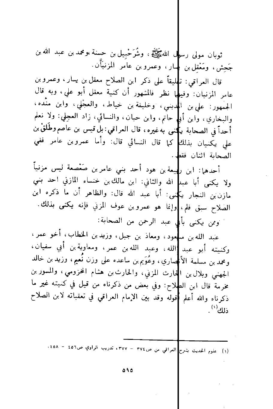 قال العراقي: تعليقا على ذكر ابن الصلاح معقل بن يسار، وعمرو بن عامر المزنيان: وفيهما نظر فالمشهور أن كنية معقل أبو عليّ، وبه قال الجمهور: عليّ بن المديني، وخليفة بن خياط، والعجلي، وابن منده، والبخاري، وابن أبي حاتم، وابن حبان، والنسائي، زاد العجلي: ولا نعلم أحدا في الصحابة يكنى به غيره، قال العراقي: بل قيس بن عاصم, وطلق بن عليّ يكنيان بذلك كما قال النسائي قال: وأما عمرو بن عامر ففي الصحابة اثنان فقط.