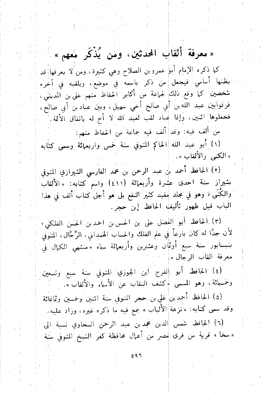كما ذكره الإمام أبو عمرو بن الصلاح, وهي كثيرة، ومن لا يعرفها قد يظنها أسامي, فيجعل من ذكر باسمه في موضع، وبلقبه في آخره شخصين كما وقع ذلك لجماعة من أكابر الحفاظ منهم عليّ بن المديني، فرقوا بين عبد الله بن أبي صالح أخي سهيل، وبين عباد بن أبي صالح، فجعلوها اثنين، وإنما عباد لقب لعبد الله لا أخ له باتفاق الأئمة.