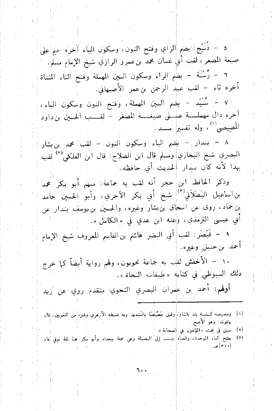 8- بندار -بضم الباء وسكون النون- لقب محمد بن بشار البصري شيخ البخاري ومسلم. قال ابن الصلاح: قال ابن الفلكي2 لقب بهذا؛ لأنه كان بندار الحديث أي حافظه.
