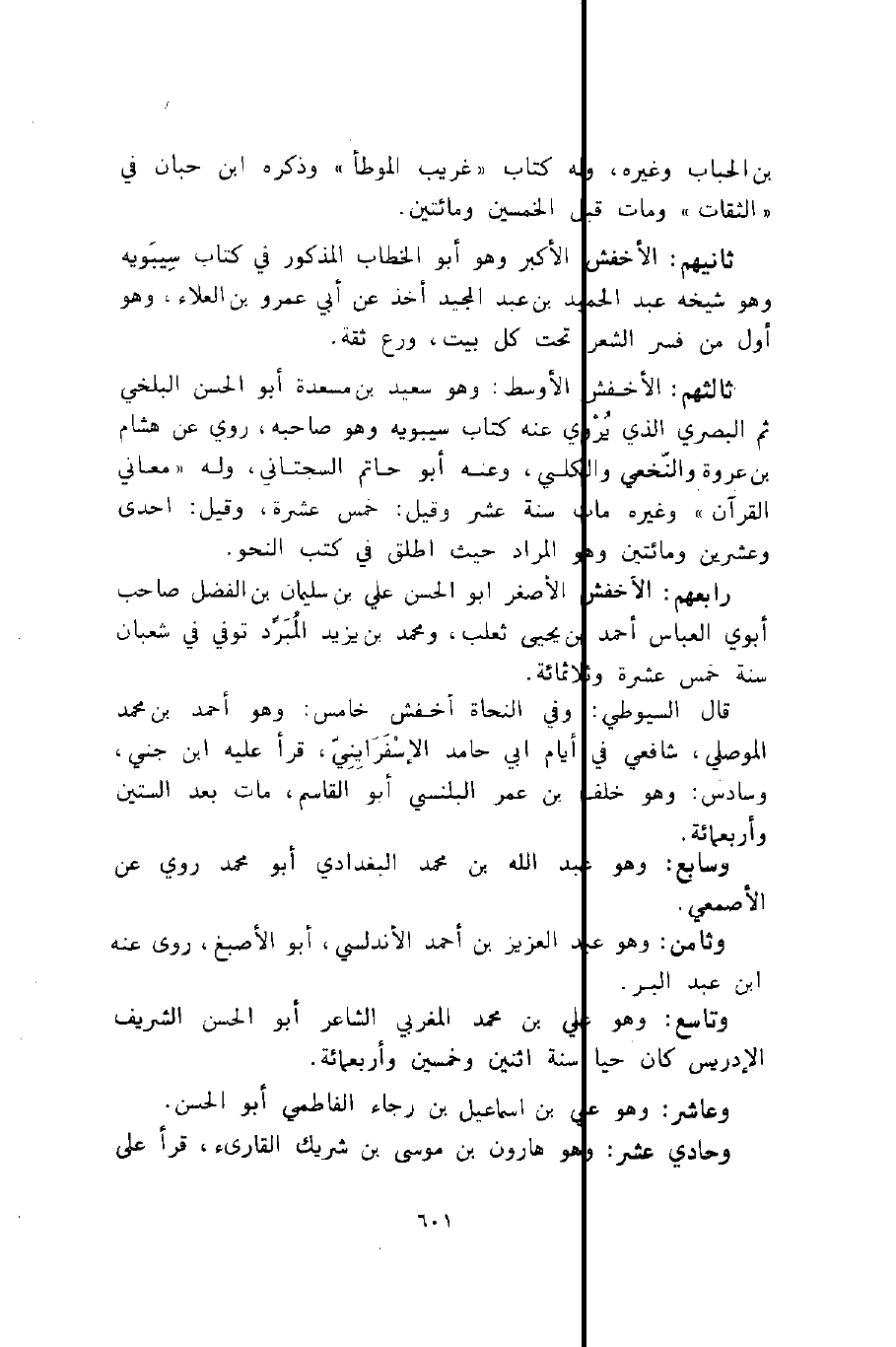 رابعهم: الأخفش الأصغر أبو الحسن عليّ بن سليمان بن الفضل صاحب أبوي العباس أحمد بن يحيى ثعلب، ومحمد بن يزيد المبرد, توفي في شعبان سنة خمس عشرة وثلاثمائة.