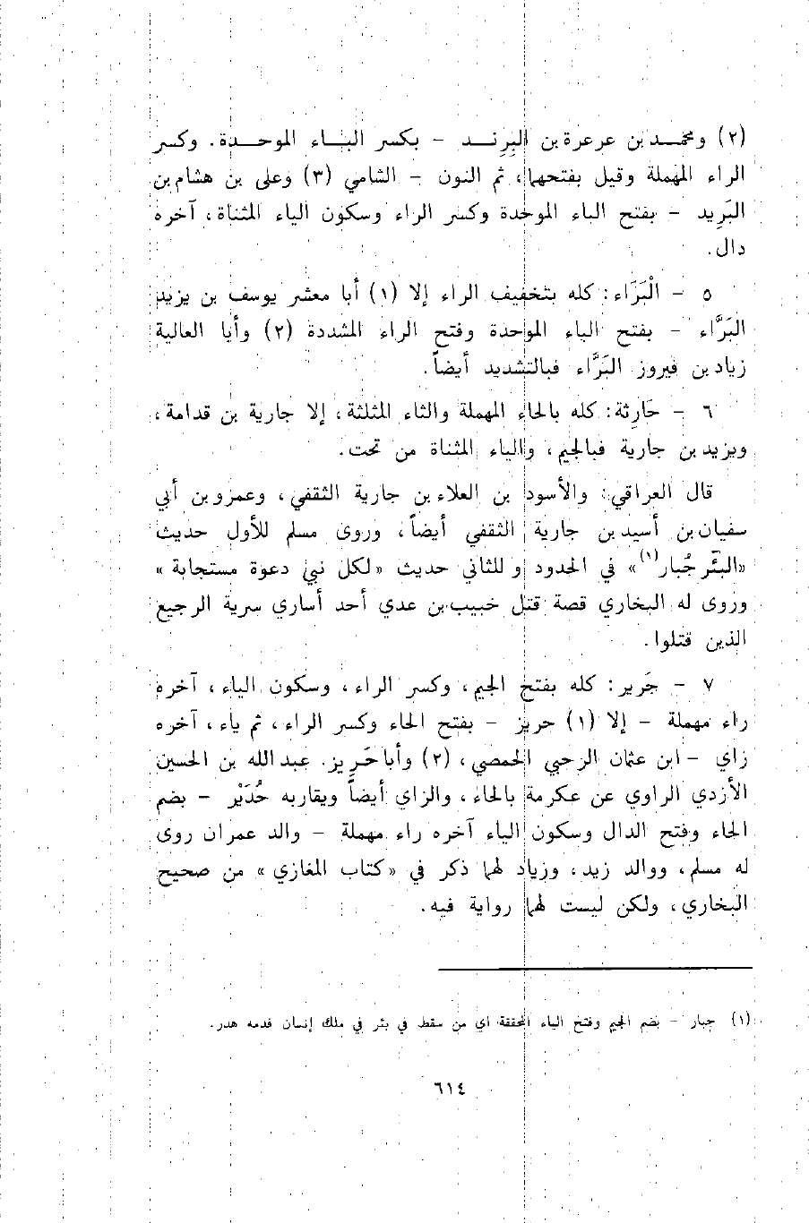 6- حارثة: كله بالحاء المهملة والثاء المثلثة، إلا جارية بن قدامة، ويزيد بن جارية فبالجيم، والياء المثناة من تحت.