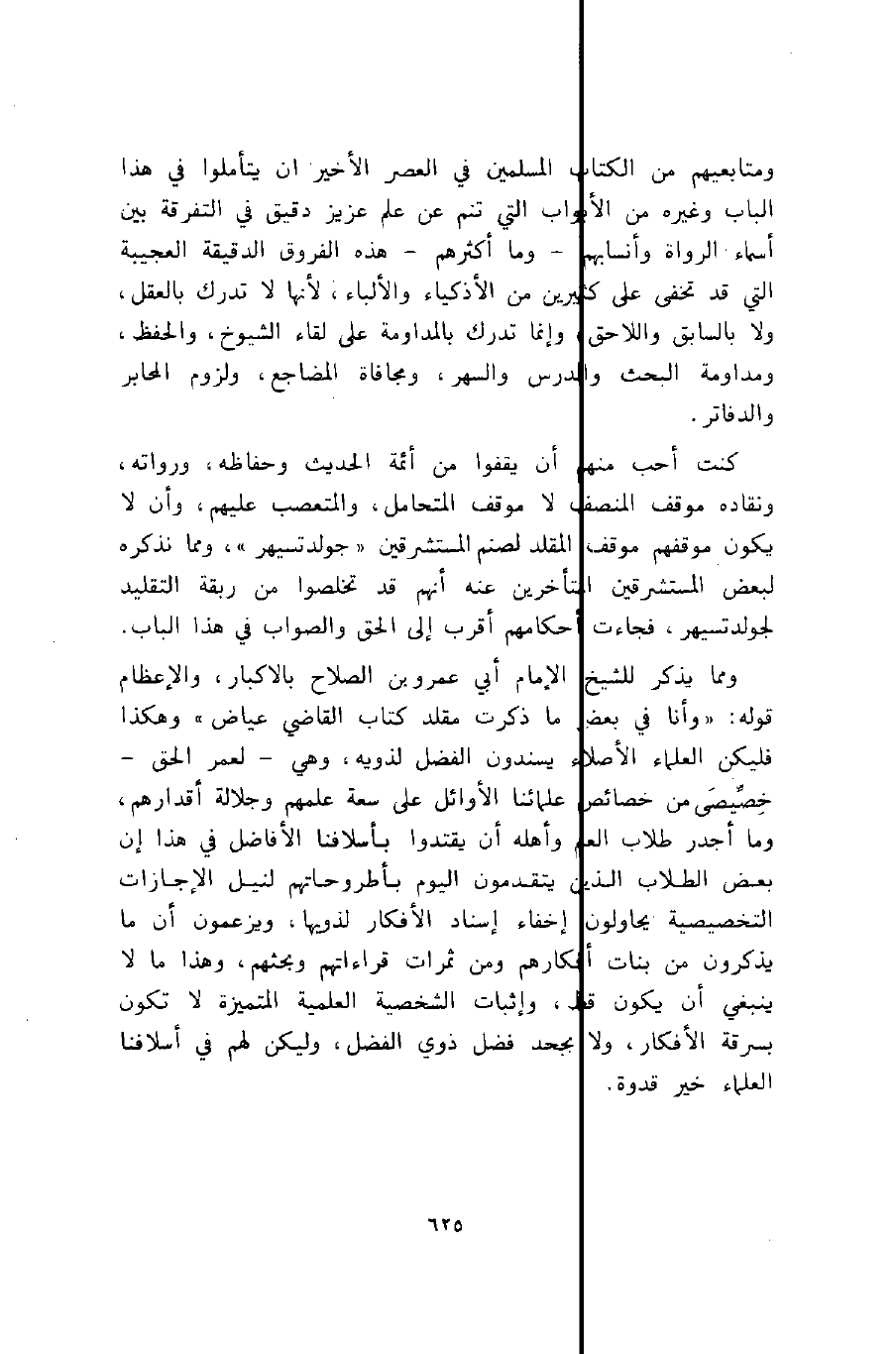 كنت أحب منهم أن يقفوا من أئمة الحديث وحفاظه، ورواته، ونقاده موقف المنصف لا موقف المتحامل، والمتعصب عليهم، وأن لا يكون موقفهم موقف المقلد لصنم المستشرقين "جولدتسيهر"، ومما نذكره لبعض المستشرقين المتأخرين عنه أنهم قد تخلصوا من ربقة التقليد لجولدتسيهر، فجاءت أحكامهم أقرب إلى الحق والصواب في هذا الباب.