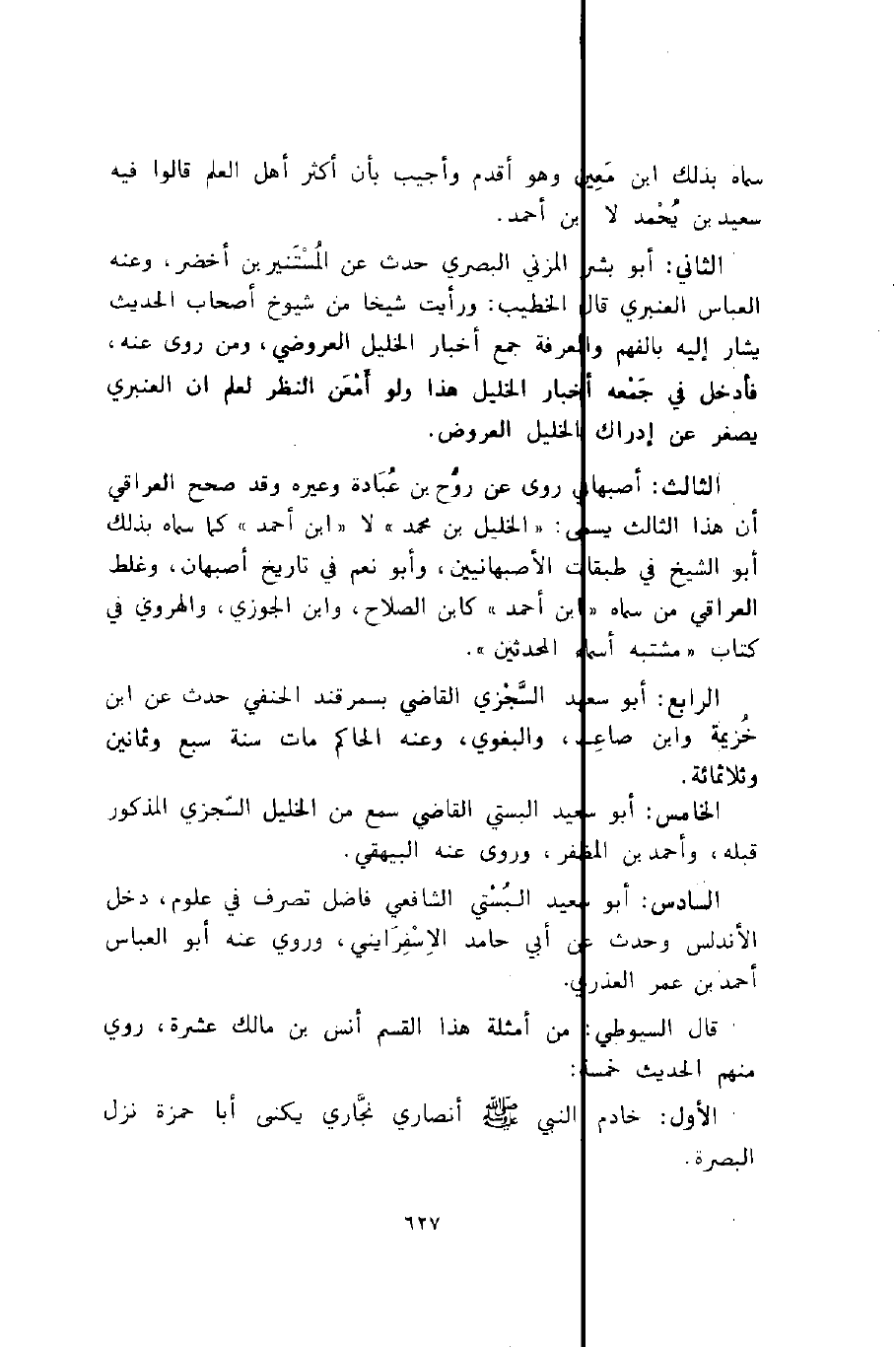 الثاني: أبو بشر المزني البصري حدث عن المستنير بن أخضر، وعنه العباس العنبري قال الخطيب: ورأيت شيخا من شيوخ أصحاب الحديث يشار إليه بالفهم والمعرفة جمع أخبار الخليل العروضي، ومن روى عنه، فأدخل في جمعه أخبار الخليل هذا ولو أمعن النظر لعلم أن العنبري يصغر عن إدراك الخليل العروض.