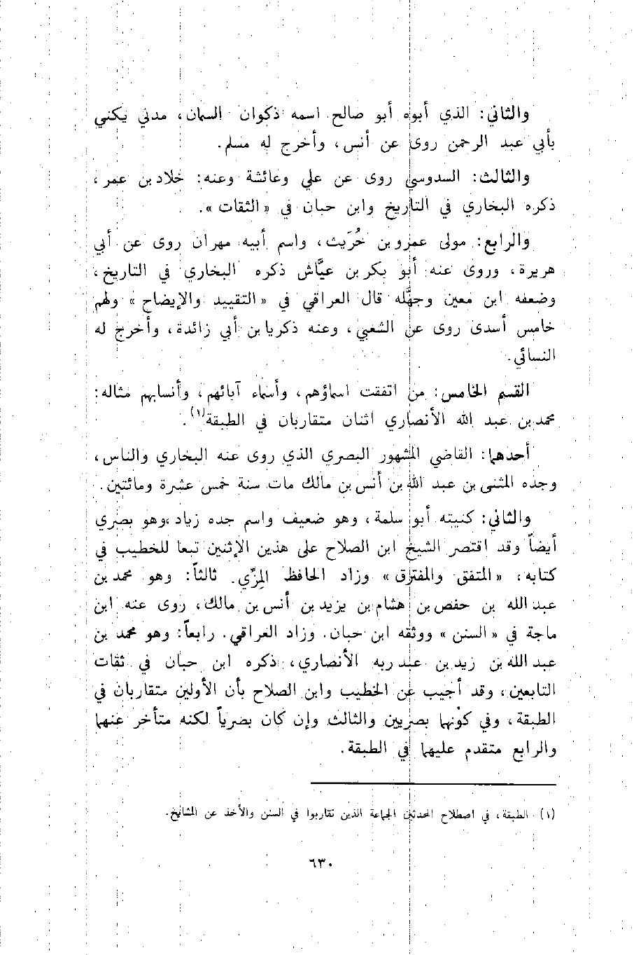 القسم الخامس: من اتفقت أسماؤهم، وأسماء آبائهم، وأنسابهم مثاله: محمد بن عبد الله الأنصاري اثنان متقاربان في الطبقة1.