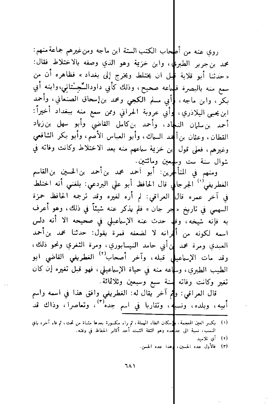 1 بكسر العين المعجمة، وإسكان الطاء المهملة، ثم راء مكسورة بعدها مثناة من تحت، ثم فاء آخره ياء النسب، نسبة إلى جد جده وهو الثقة الثبت أحد أكابر الحفاظ في وقته.