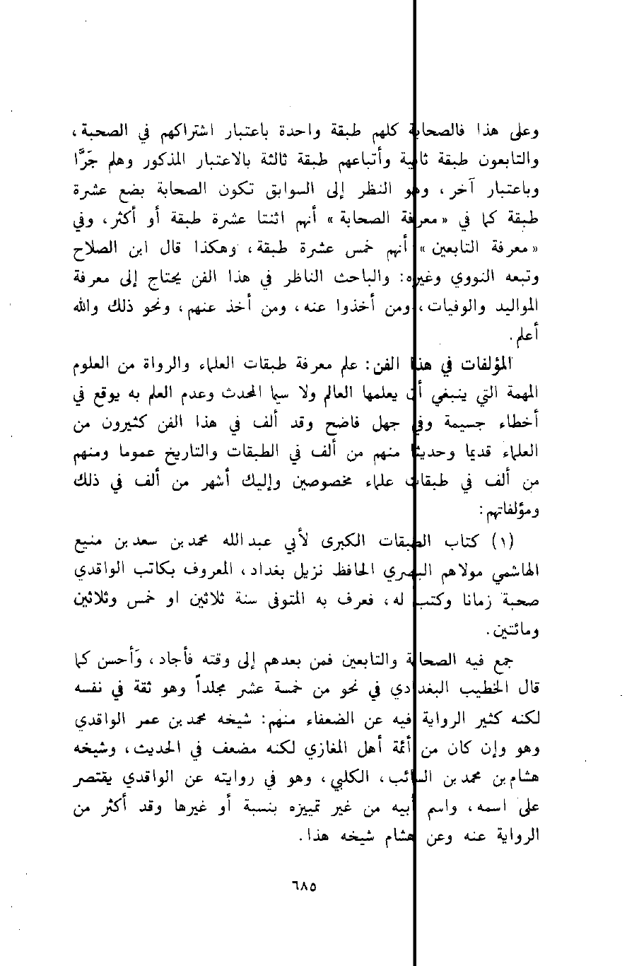1- كتاب الطبقات الكبرى لأبي عبد الله محمد بن سعد بن منيع الهاشمي مولاهم البصري الحافظ نزيل بغداد، المعروف بكاتب الواقدي صحبه زمانا وكتب له، فعرف به, المتوفى سنة ثلاثين أو خمس وثلاثين ومائتين.