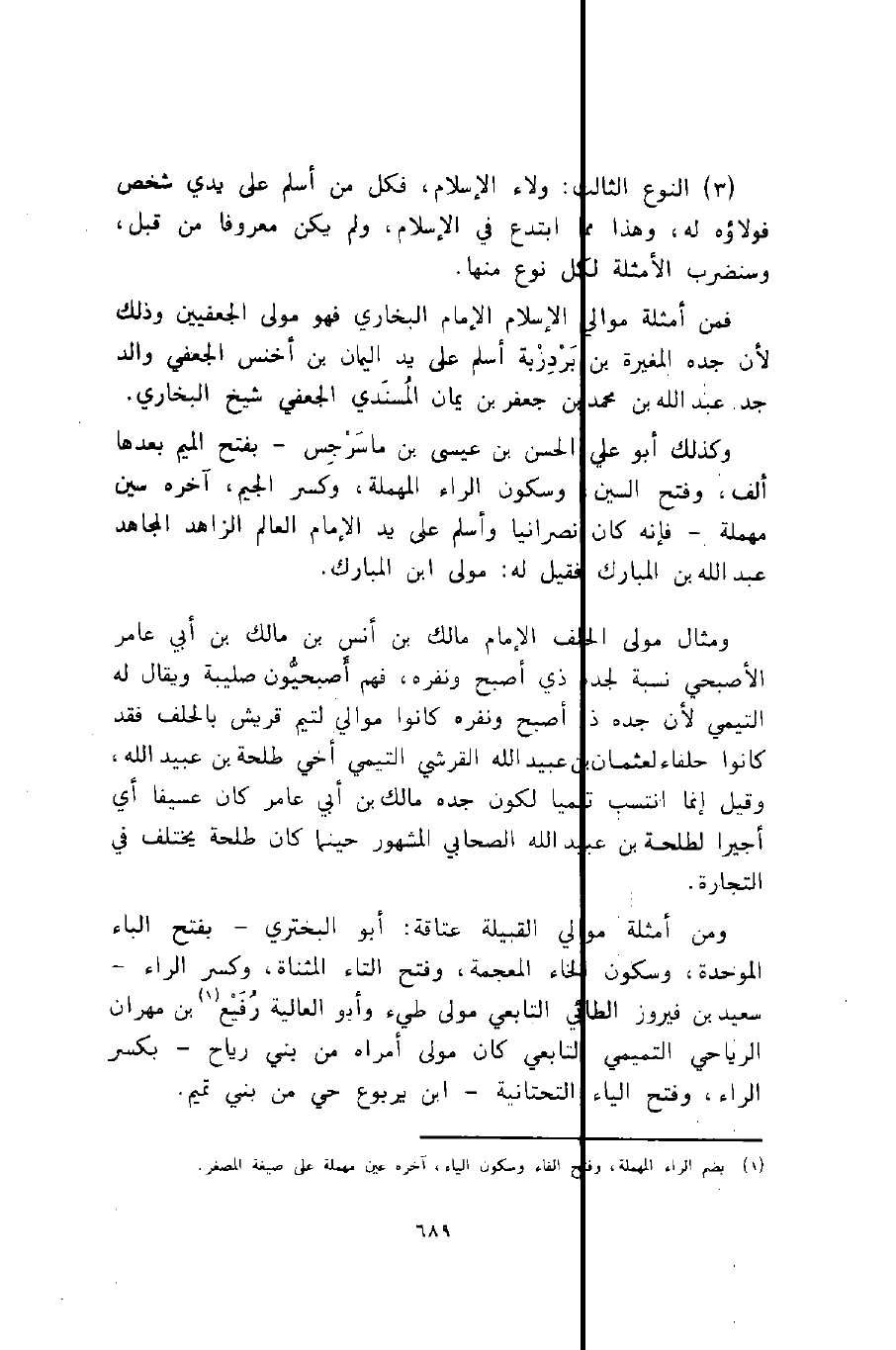 3- النوع الثالث: ولاء الإسلام، فكل من أسلم على يدي شخص فولاؤه له، وهذا مما ابتدع في الإسلام، ولم يكن معروفا من قبل، وسنضرب الأمثلة لكل نوع منها.