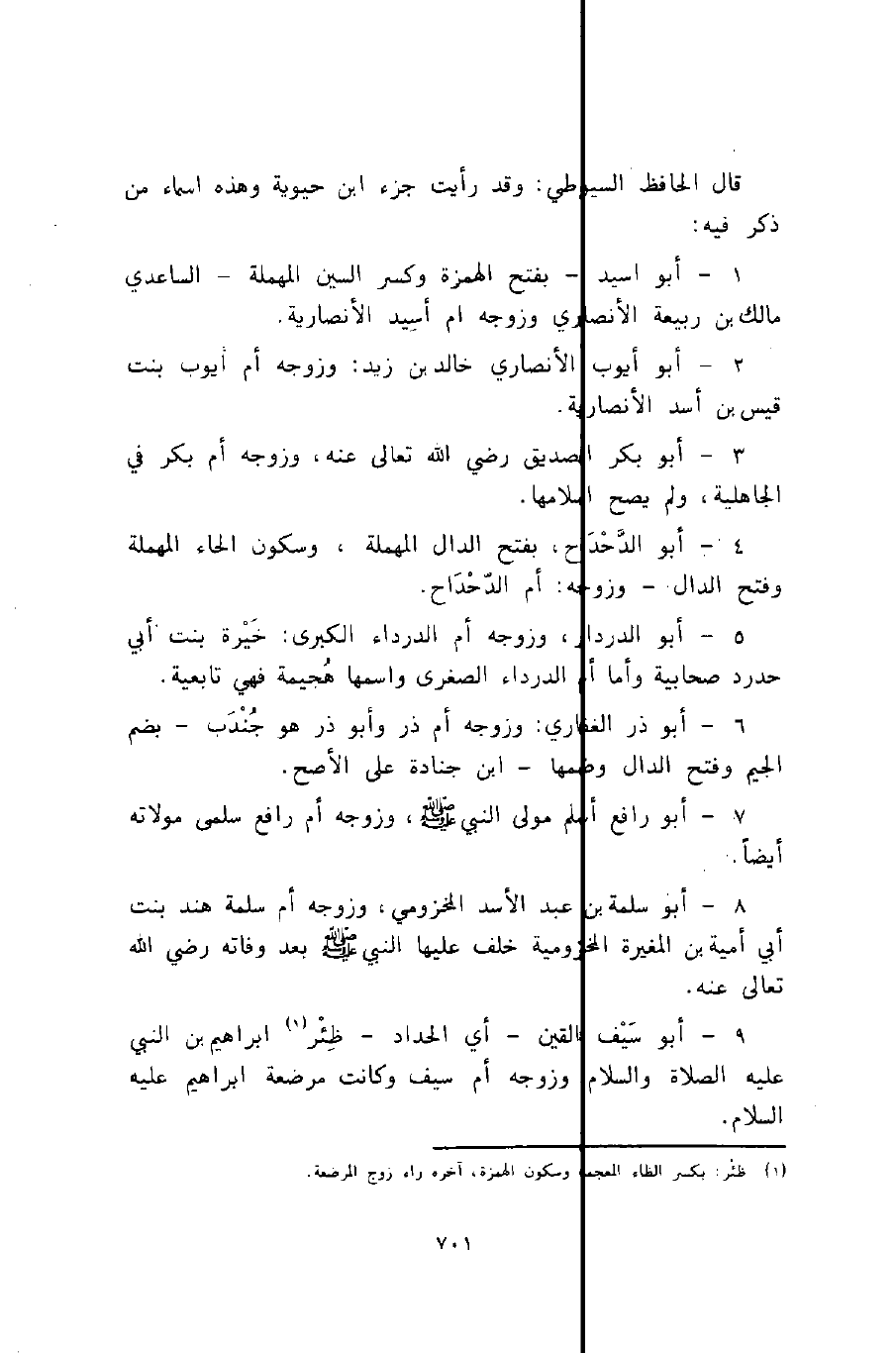 6- أبو ذر الغفاري: وزوجه أم ذر وأبو ذر هو جندب -بضم الجيم وفتح الدال وضمها- ابن جنادة على الأصح.