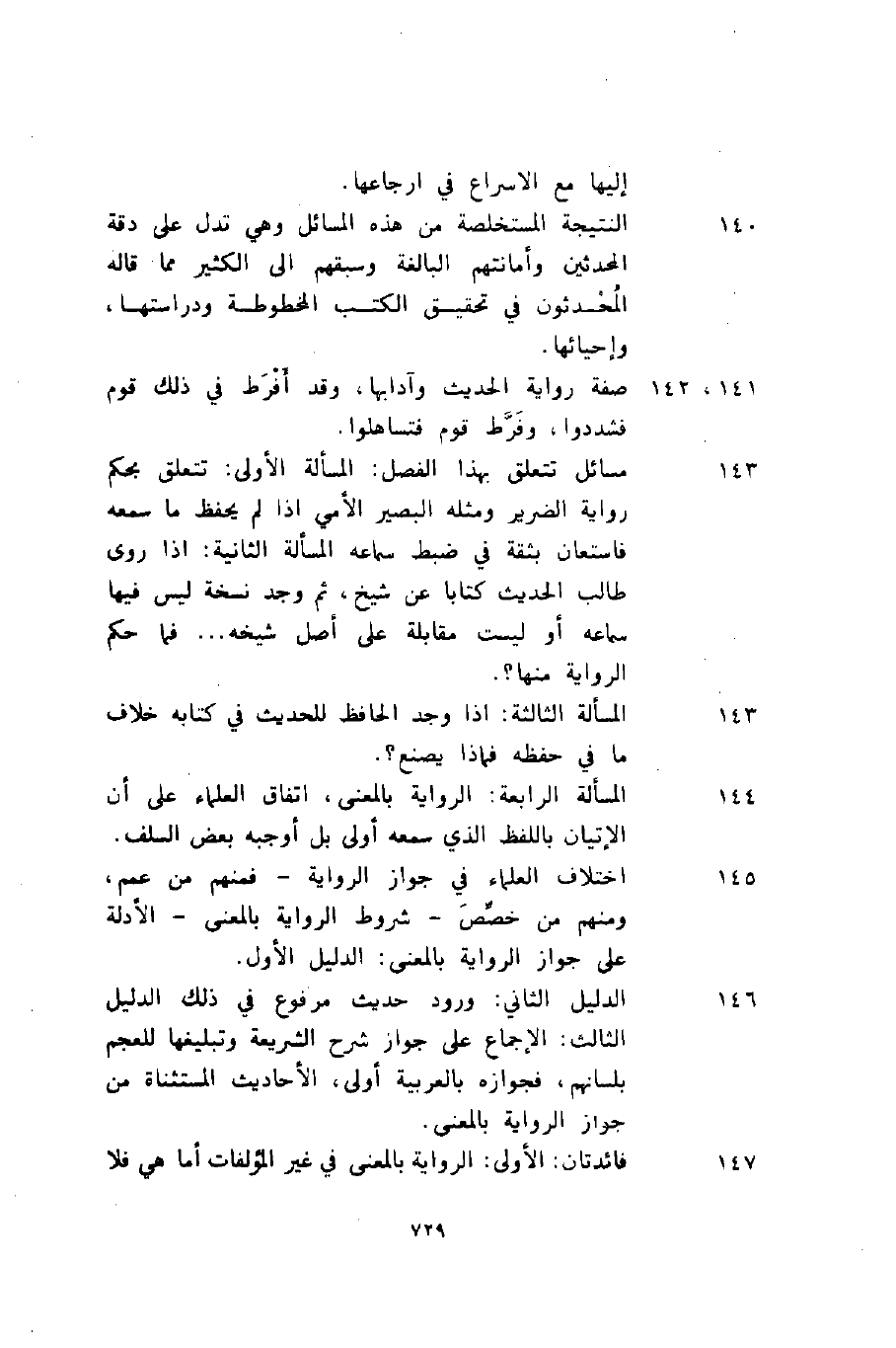 145 اختلاف العلماء في جواز الرواية, فمنهم من عمم، ومنهم من خصص, شروط الرواية بالمعنى, الأدلة على جواز الرواية بالمعنى: الدليل الأول