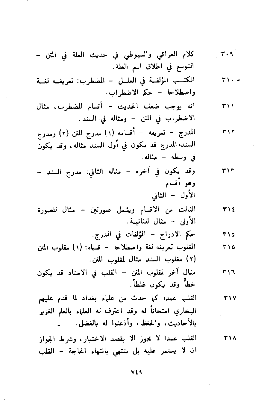 313 وقد يكون في آخره, مثاله, الثاني: مدرج السند, وهو أقسام: