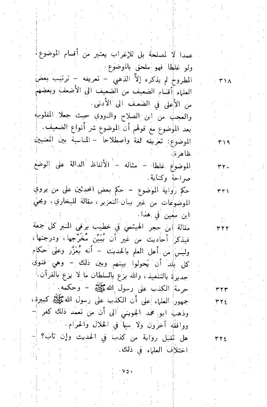 324 جمهور العلماء على أن الكذب على رسول الله -صلى الله عليه وسلم- كبيرة، وذهب أبو محمد الجويني إلى أن من تعمد ذلك كفر, ووافقه آخرون ولا سيما في الحلال والحرام