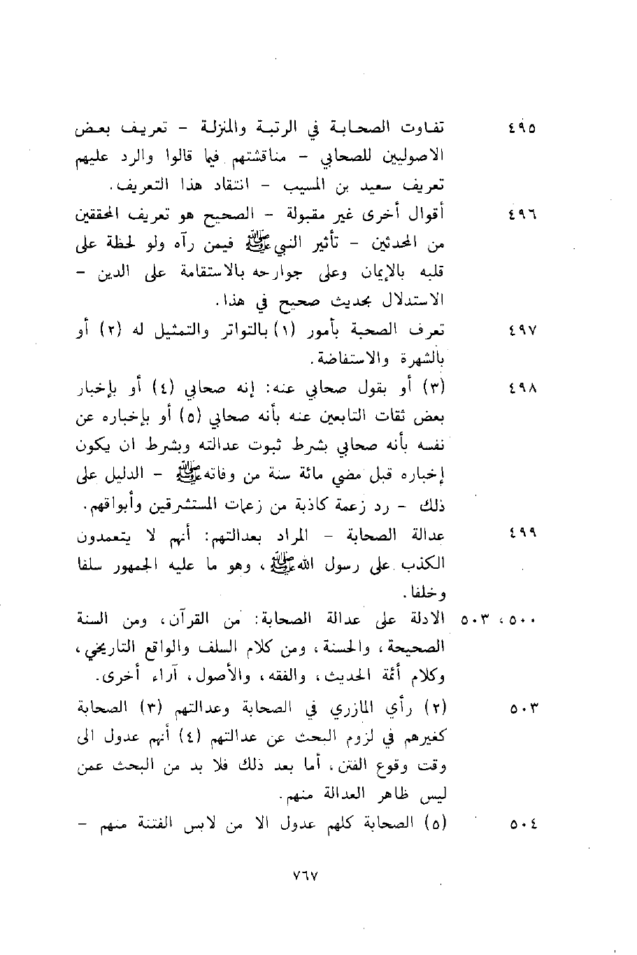 500، 503 الأدلة على عدالة الصحابة: من القرآن، ومن السنة الصحيحة، والحسنة، ومن كلام السلف والواقع التاريخي، وكلام أئمة الحديث، والفقه، والأصول، آراء أخرى