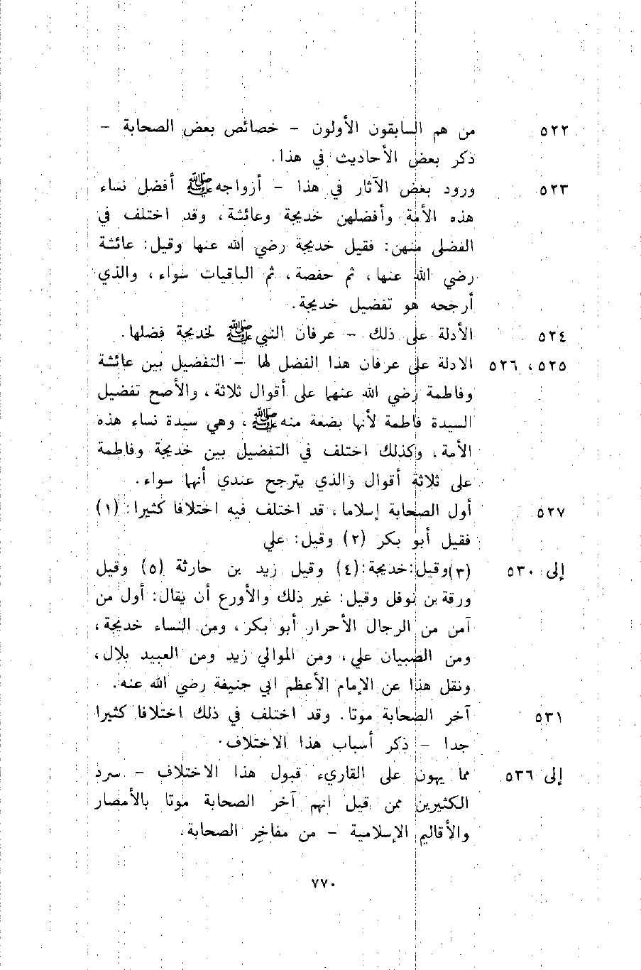 525، 526 الأدلة على عرفان هذا الفضل لها, التفضيل بين عائشة وفاطمة رضي الله عنهما على أقوال ثلاثة، والأصح تفضيل السيدة فاطمة لأنها بضعة منه -صلى الله عليه وسلم- وهي سيدة نساء هذه الأمة، وكذلك اختلف في التفضيل بين خديجة وفاطمة على ثلاث أقوال والذي يترجح عندي أنهما سواء